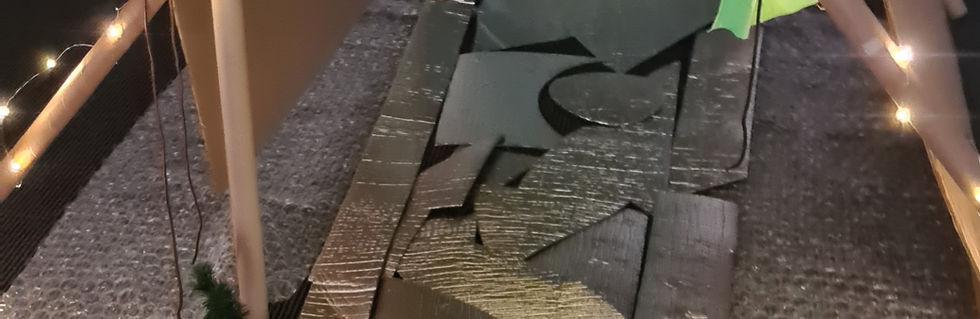 The tree was designed and constructed by Paul, Doug with decoration prototypes completed by Sacha and the volunteers. The three-panel tree was illuminated from within by fairy lights and decorated with materials that ReMida had diverted from landfill. A crucial part of the trees design was its modular design, which allowed for its deconstruction and storage for future Christmas displays.